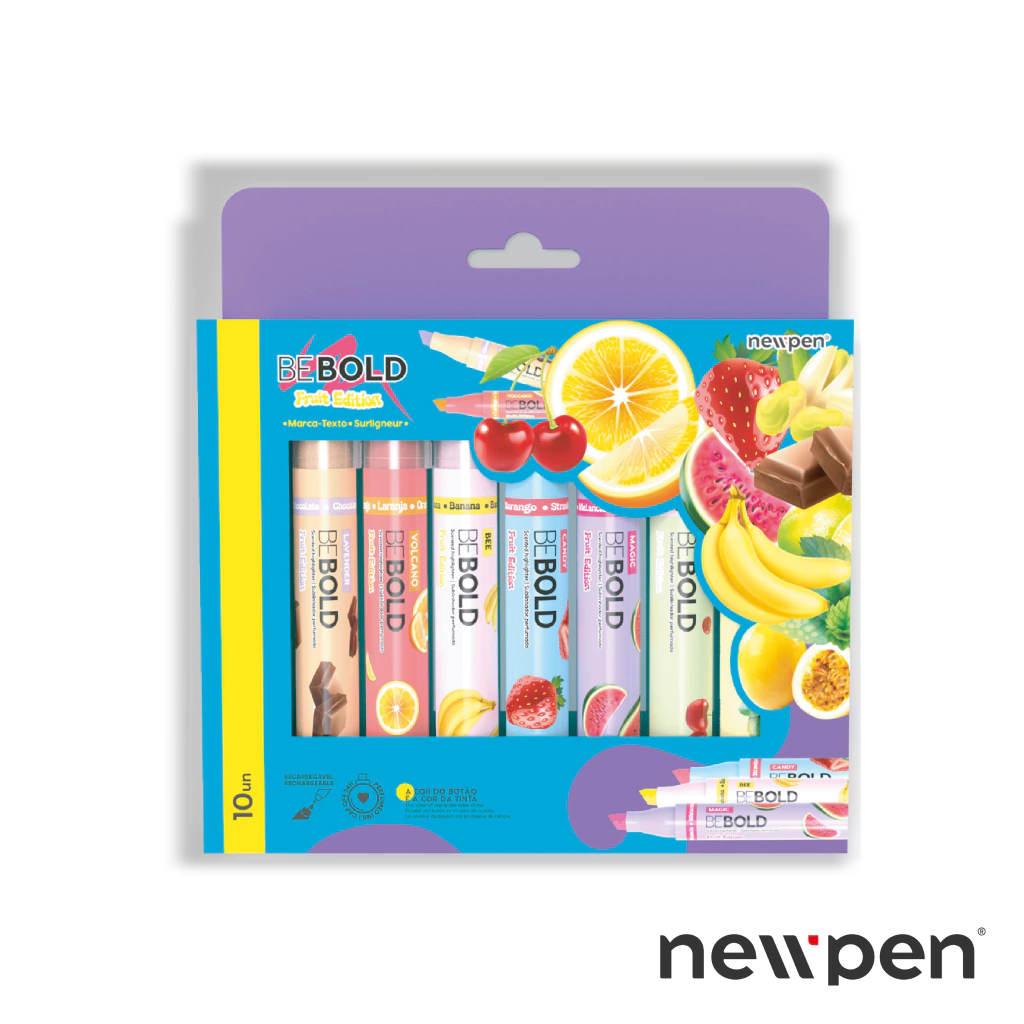 Descubrí la frescura y originalidad de BeBold by NewPen con esta edición especial Fruit Edition, un set de 10 resaltadores aromáticos pensados para transformar cada trazo en una experiencia multisensorial única.